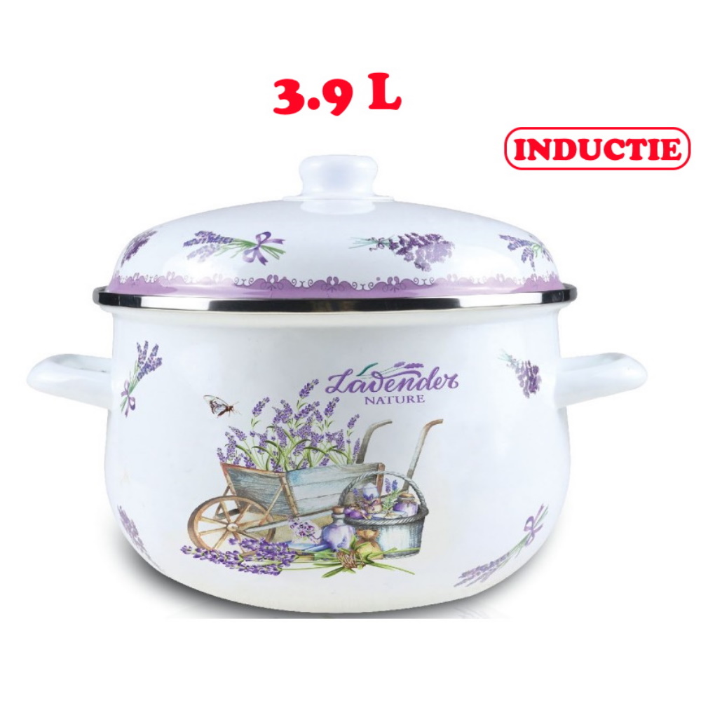 Cratita emailata cu capac, 3.90 l, Grunberg, Lavander