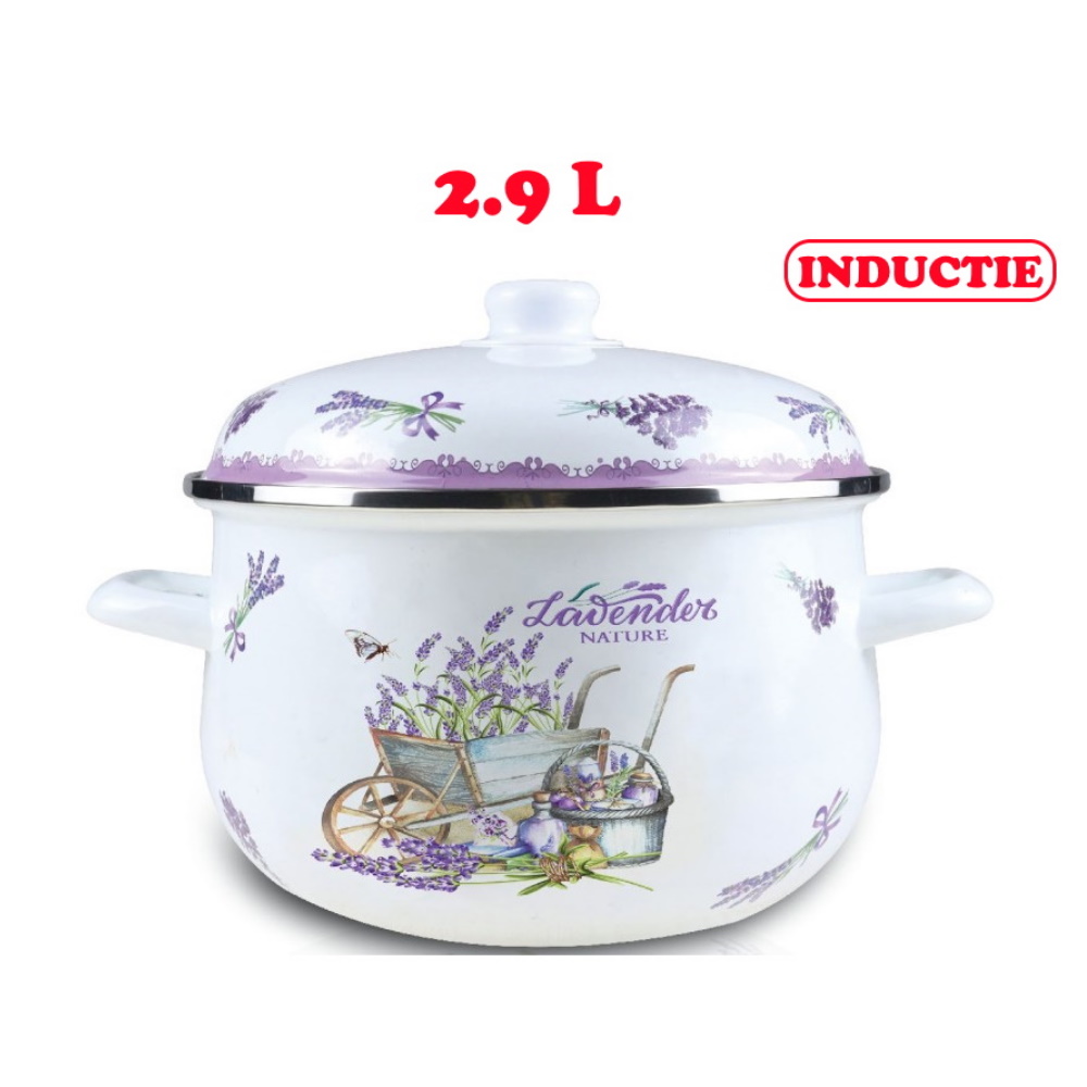 Cratita emailata cu capac, 2.90 l, Grunberg, Lavander