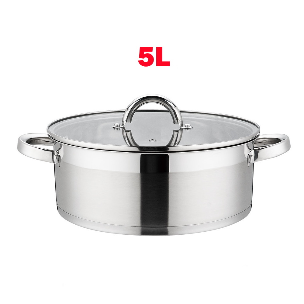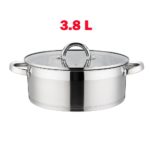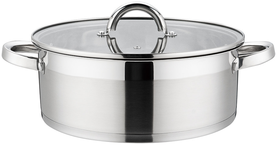 Cratita din inox , cu capac din sticla, 26 cm, 5.00 l, Grunberg , baza capsulata.