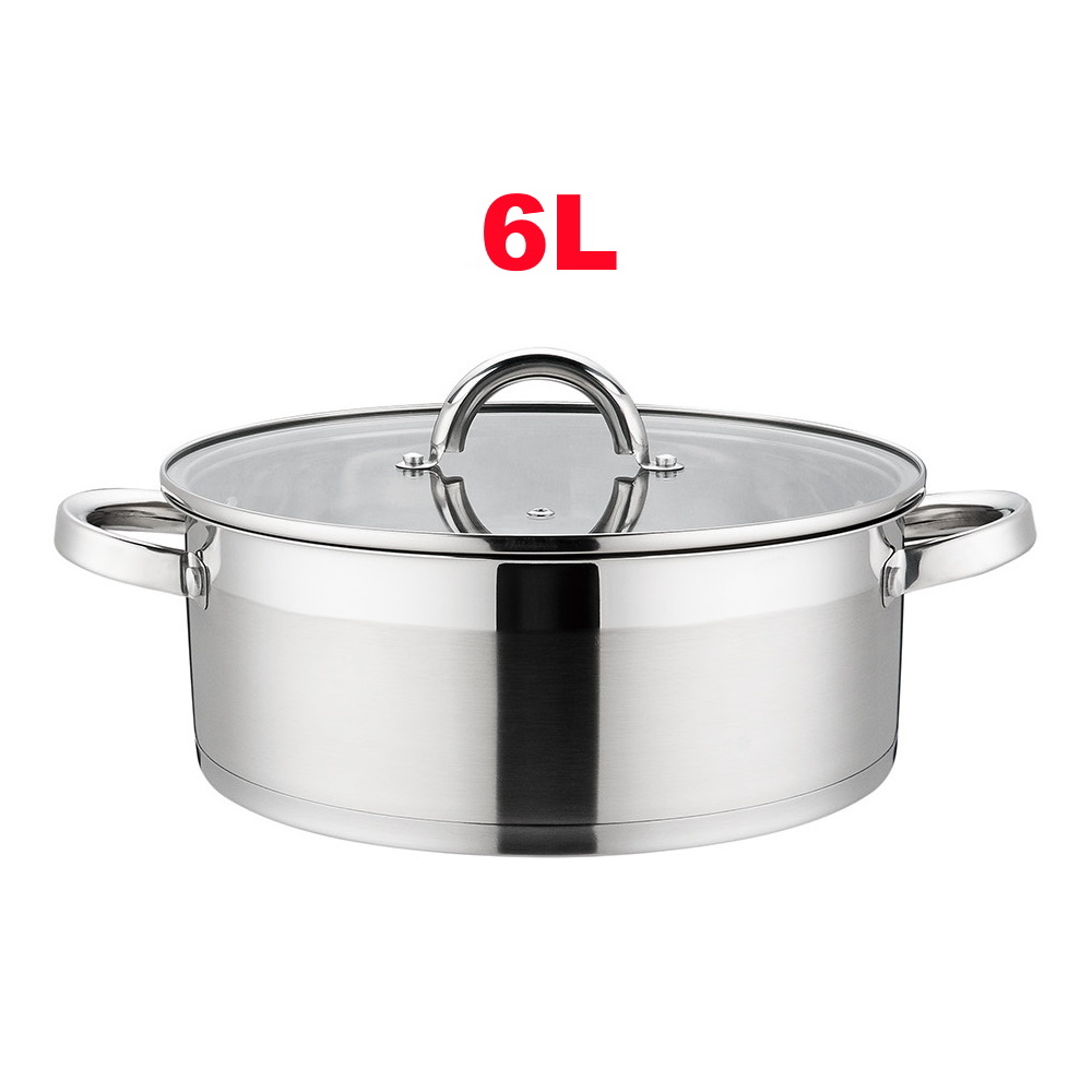 Cratita din inox , cu capac din sticla, 28 cm, 6.00 l, Grunberg , baza capsulata.