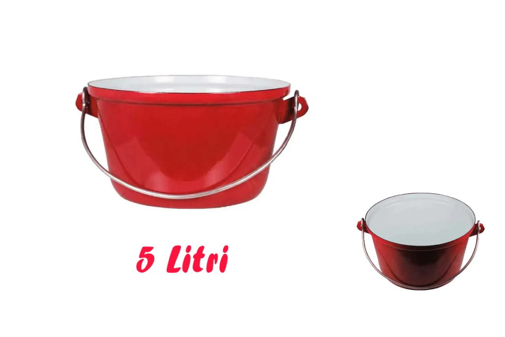 Ceaunul emailat cunoscut si ca tuci emailat cu capacitate de 5 litri este accesoriul ideal atat pentru prepararea bucatelor in aer liber, cat si pentru gatitul in interiorul bucatariei dumneavoastra. Ceaunul emailat de 5 l pentru mancare are un maner de prindere fabricat din otel care ii ofera manevrabilitate crescuta si capabilitatea de a fi prins la un trepied. Acest ceaun emailat (tuci) este confectionat din foaie de otel invelit cu email (dat prin pulbere de sticla si incins la 850 de grade Celsius). Cu ajutorul acestui vas veti putea prepara bucate traditionale foarte gustoase, fara ca acestea sa se afume sau sa se lipeasca de peretii lui. Fiind finisat cu grija si potrivit ca volum, acest ceaun emailat (tuci emailat) are rezistenta sporita si durabilitate mare.