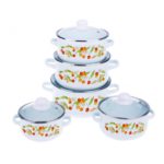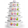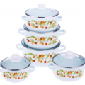 Set de gatit 10 Piese emailat culoarea Alb, model Fructe