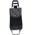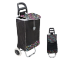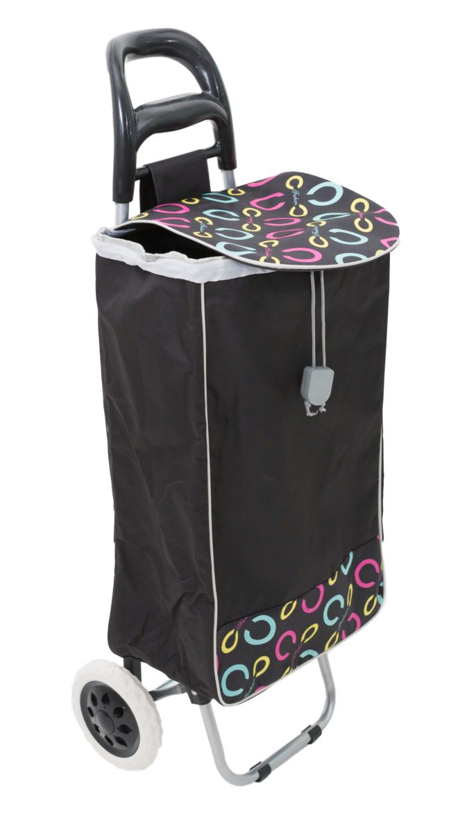 Carucior de cumparaturi fabricat din material impermeabil, cu cadru din metalic, maner din plastic, dotat cu snur de inchidere si 2 buzunare.