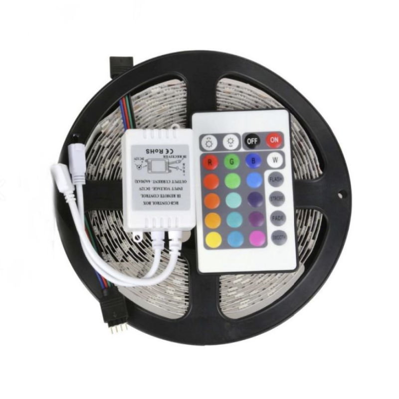 Banda cu Led-uri, RGB Multicolor, este preprogramata cu jocuri de lumini și lumina statica ce poate fi configurata de pe telecomanda.