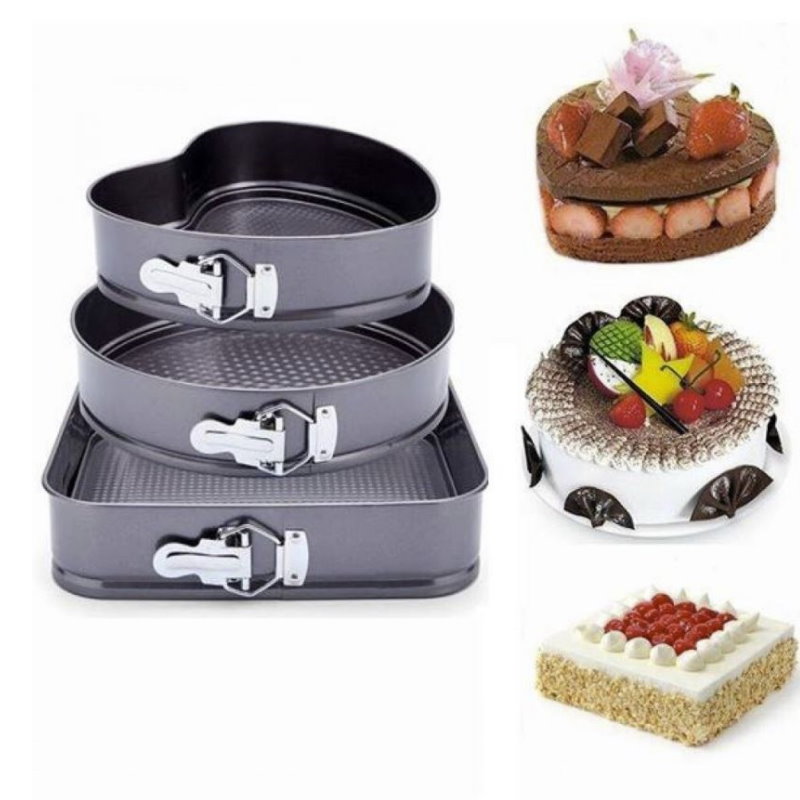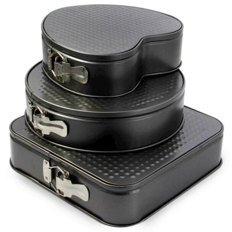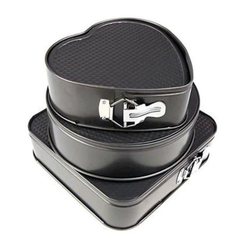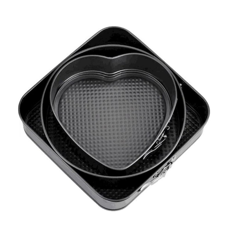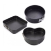 Set 3 Tavi pentru Copt cu suprafata Antiaderenta Teflonata si baza detasabila, forma patrat, rotunda, inima