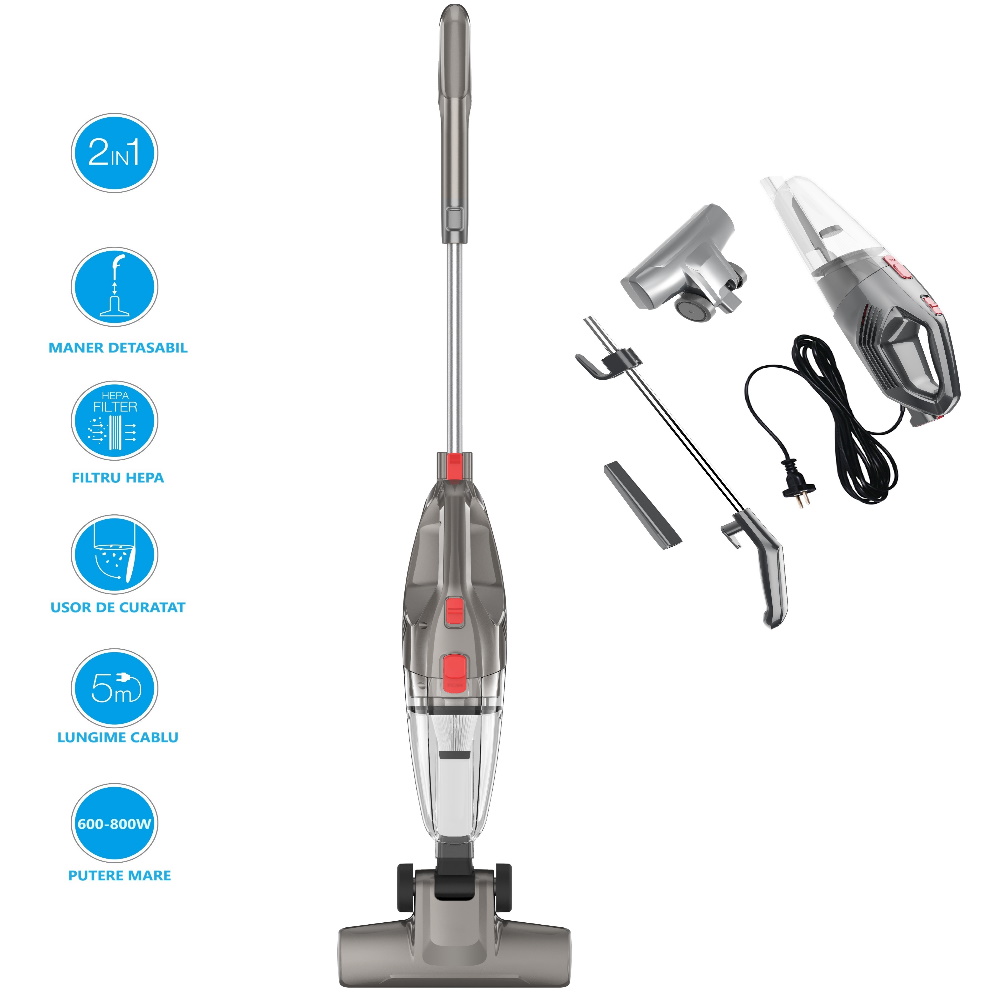 Aspirator vertical 2 in 1, ciclonic fara sac, filtru HEPA, 600 W-max 800W, Victronic