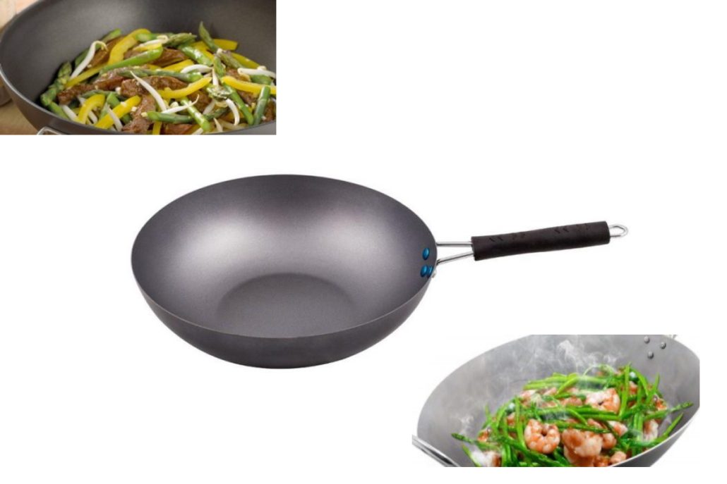 - Otelul carbon si cele 3 straturi de materiale previn lipirea alimentelor de tigaie.