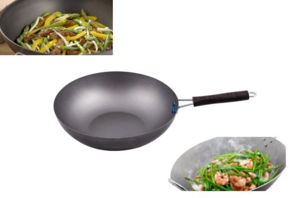 Tigaia wok , din metal , non-stick , Grunberg functioneaza pe aragaz, plita electrica, vitroceramica si sunt ideale pentru prepararea mancarurilor asiatice. Tigaia este confectionata din otel carbon in 3 straturi de materiale ce previn lipirea alimentelor de tigaie.