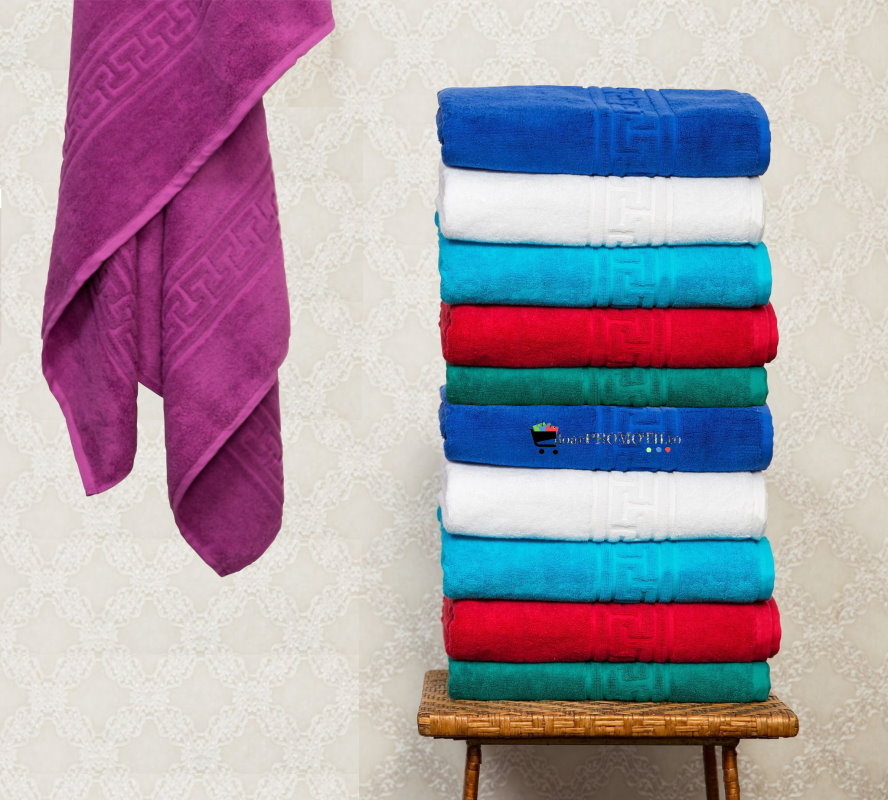Prosoape de baie albe si colorate, de tip hotel cu model bordura greceasca 28×48 cm, Material 100% bumbac, densitate 500 GSM colorate sau albe.