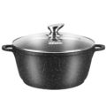 Oala CLASSIC, confectionata din aluminiu turnat si interior cu acoperire ceramica antiaderenta neagra, cu aspect marmorat, face ca produsul sa pastreze caldura o perioada mai mare de timp, reducand considerabil timpul de gatire, cat si consumul de energie. Exteriorul este acoperit de vopsea neagra cu aspect marmorat, rezistenta la temperaturi inalte. Oala vine insotita de un capac de sticla termorezistenta, cu buton din inox.