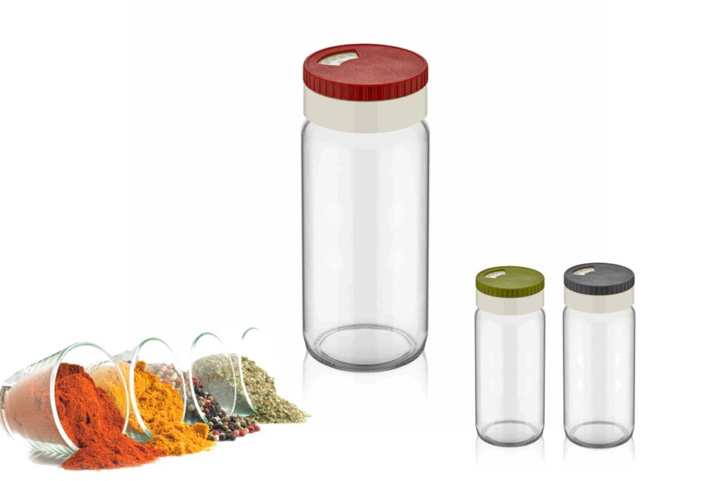 Recipient din sticla, condimente, 245 ml, diverse culori, Troya