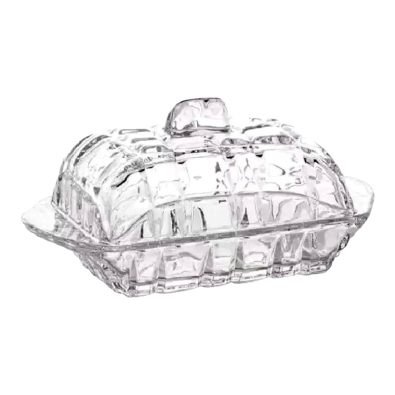 Untiera de sticla cu capac cu dimensiunea de 17 x 9 cm.