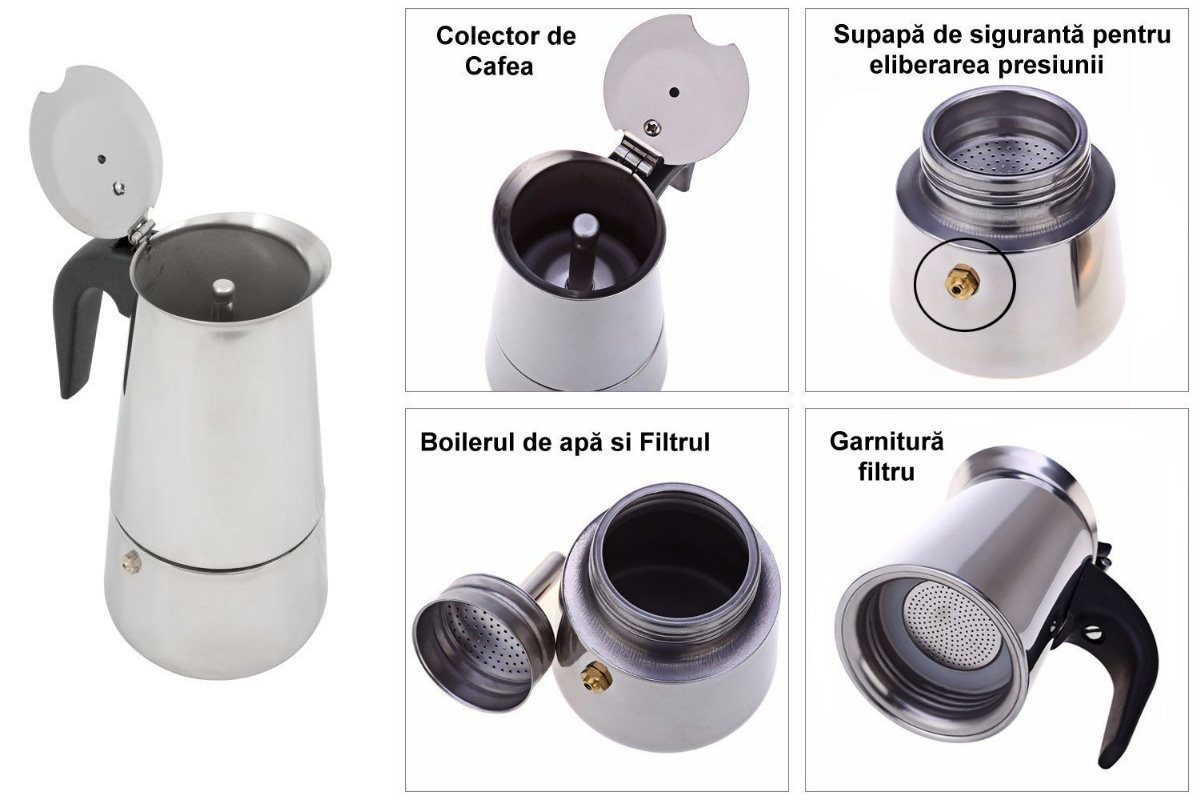 Espressorul din inox pentru aragaz este ideal pentru prepararea a 6 cesti cafea. Cu acest espressor veti realiza o cafea gustoasa intr-un mod simplu si rapid. Cu un aspect modern si dimensiuni reduse, potrivit in orice spatiu din oricare bucatarie, espressorul manual pentru cafea va ofera o modalitate simpla si confortabilade preparare a espresso-ului favorit.