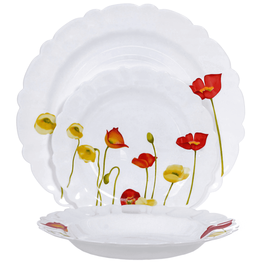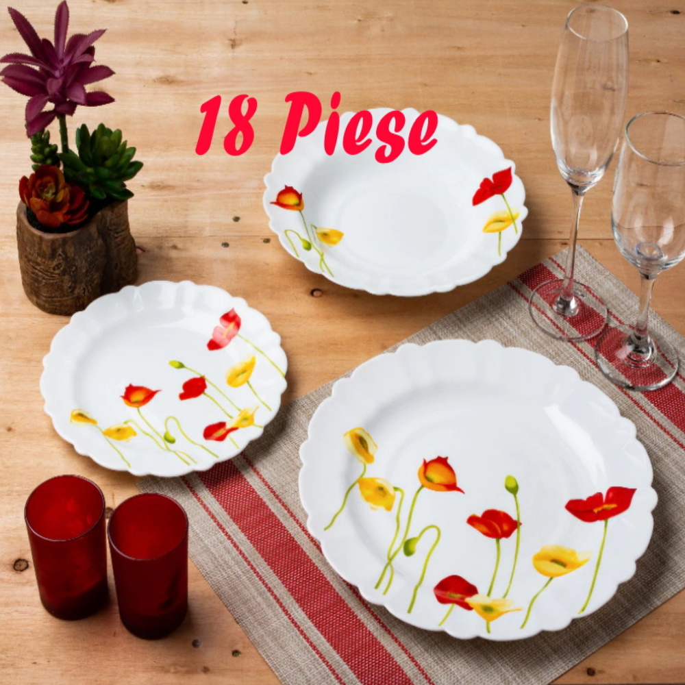 Serviciu de masa din opal alb, 18 piese model cu maci