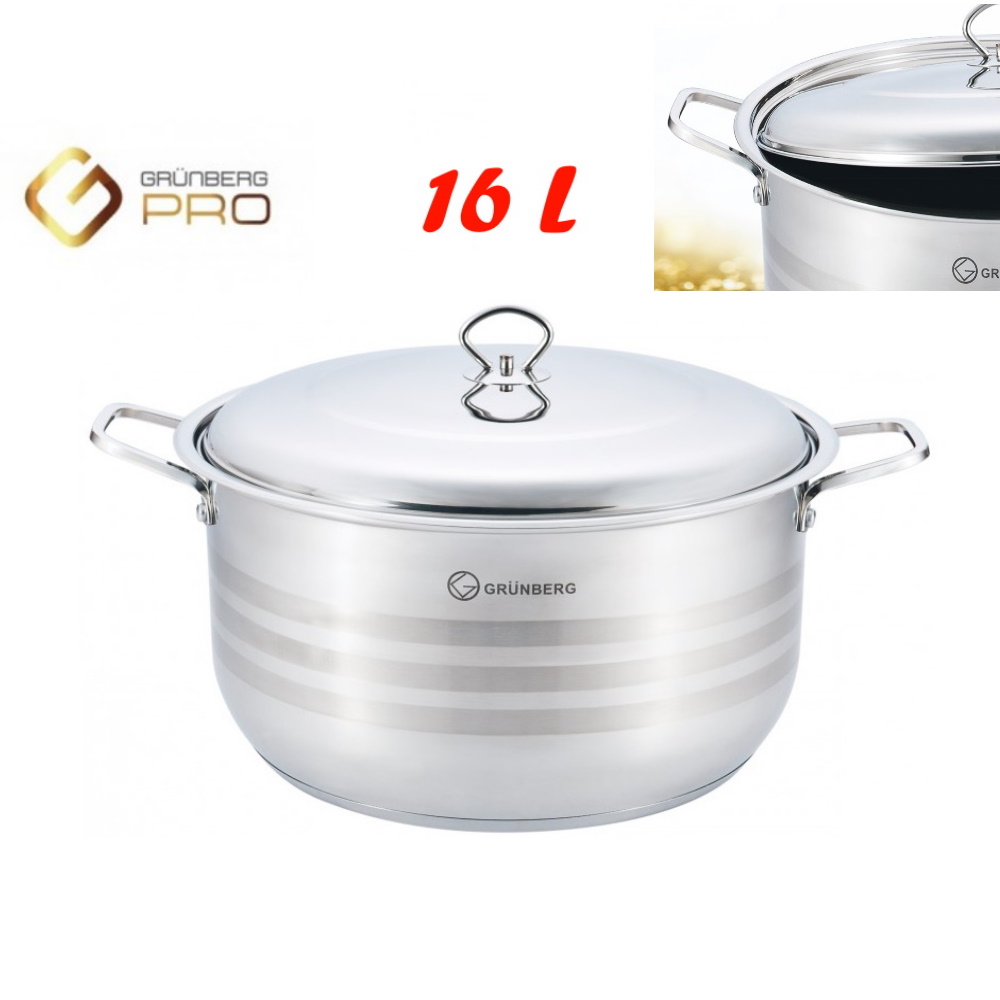 Cratita din Inox cu Capac din Inox, 34 cm, 16 Litri, Grunberg