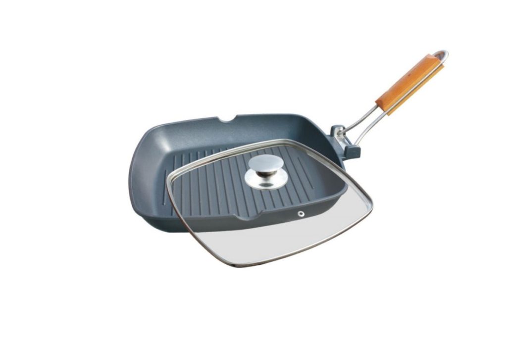 Tigaie grill aluminiu, cu Capac din Sticla Termorezistenta
