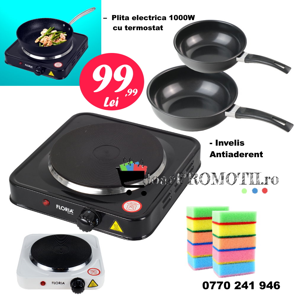 1.Plita electrica 1 ochi, 1000W cu termostat, alb sau negru