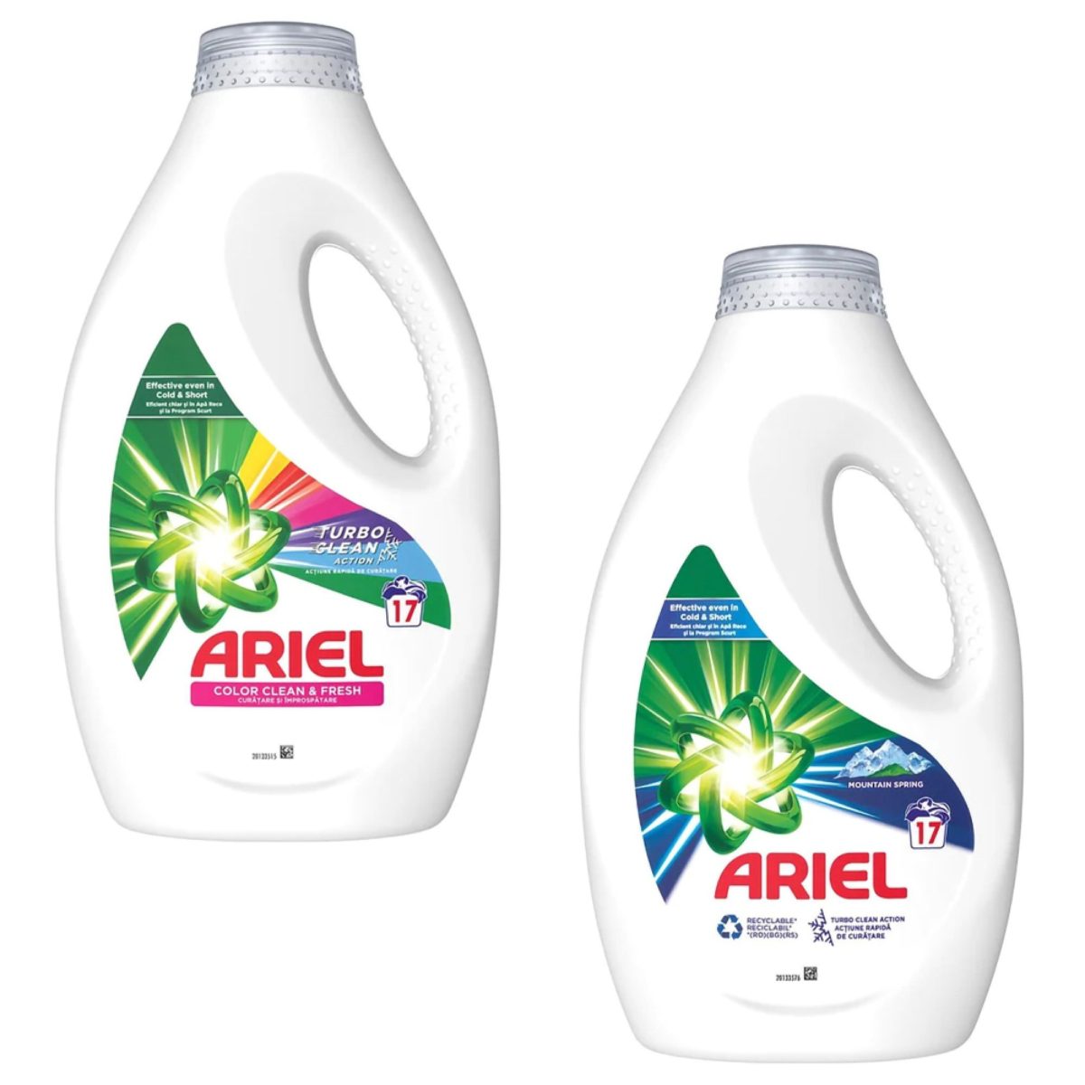 1. Detergent lichid Ariel Extra Fiber Care, 16 spalari, Color 17 Spalari, Mountain Spring 17 spalari sau Detergent lichid Savex 935 ml Litri, diverse sortimente, la alegere