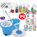 Setul de curatenie este prevazut cu un sistem inovativ de centrifugare, sistem ce poate fi folosit de oricine cu usurinta si nu este nevoie de un efort fizic mare pentru spalarea si stoarcerea mopului.