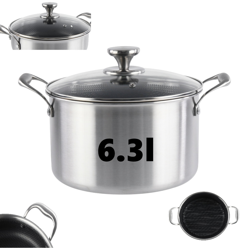 Cratita din inox, cu capac din sticla, invelis anti-aderent honeycomb, compatibila plita cu inductie, 24 cm, 6.30 l, Grunberg