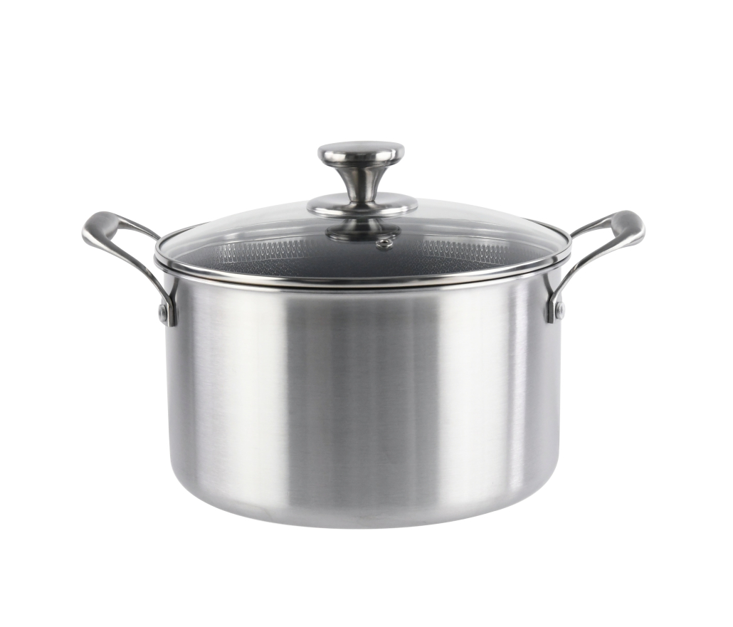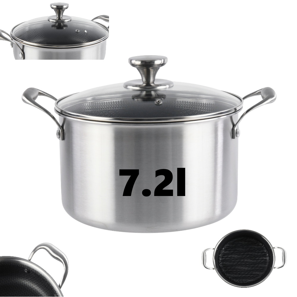 Cratita din inox, cu capac din sticla, invelis anti-aderent honeycomb, compatibila plita cu inductie, 26 cm, 7.20 l, Grunberg