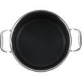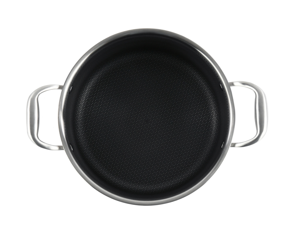 Cratita este fabricata din inox cu invelis anti-aderent cu structura hexagonala tip honeycomb ( 3 straturi inox SS304 + aluminium + inox SS430), cu manere din inox, nituite, rezistente la soc si temperaturi inalte