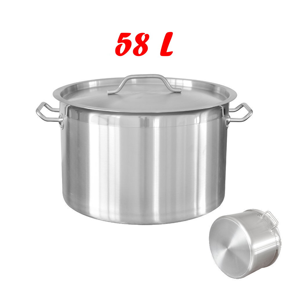 Cratita profesionala din Inox, cu manere nituite, Capac din Inox, compatibila cu plita cu inductie, 58 Litri