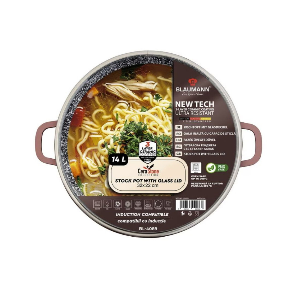 Oala cu capac, Blaumann, aluminiu placat cu ceramica marmorata, 32 x 22cm, 14 Litri
