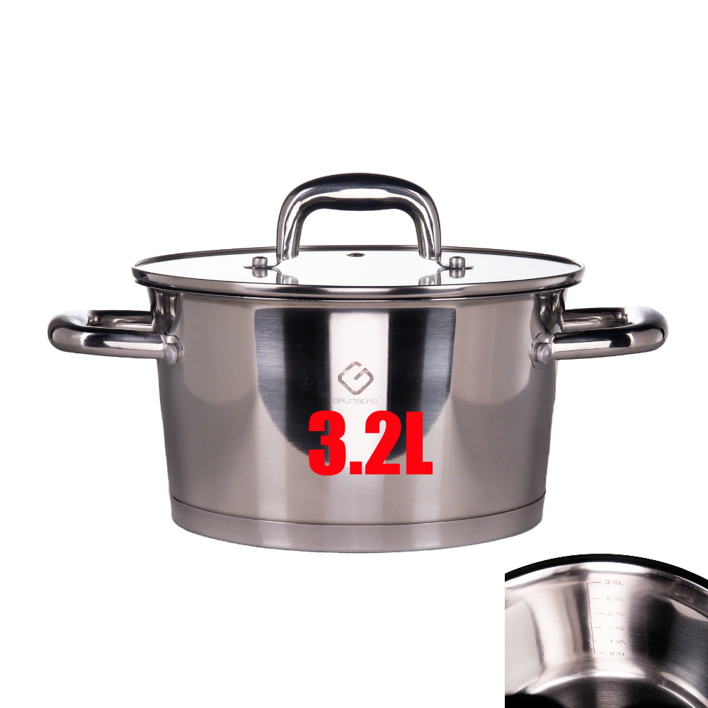 Cratita din inox, cu capac din sticla, 20 cm, 3.20 l, Grunberg