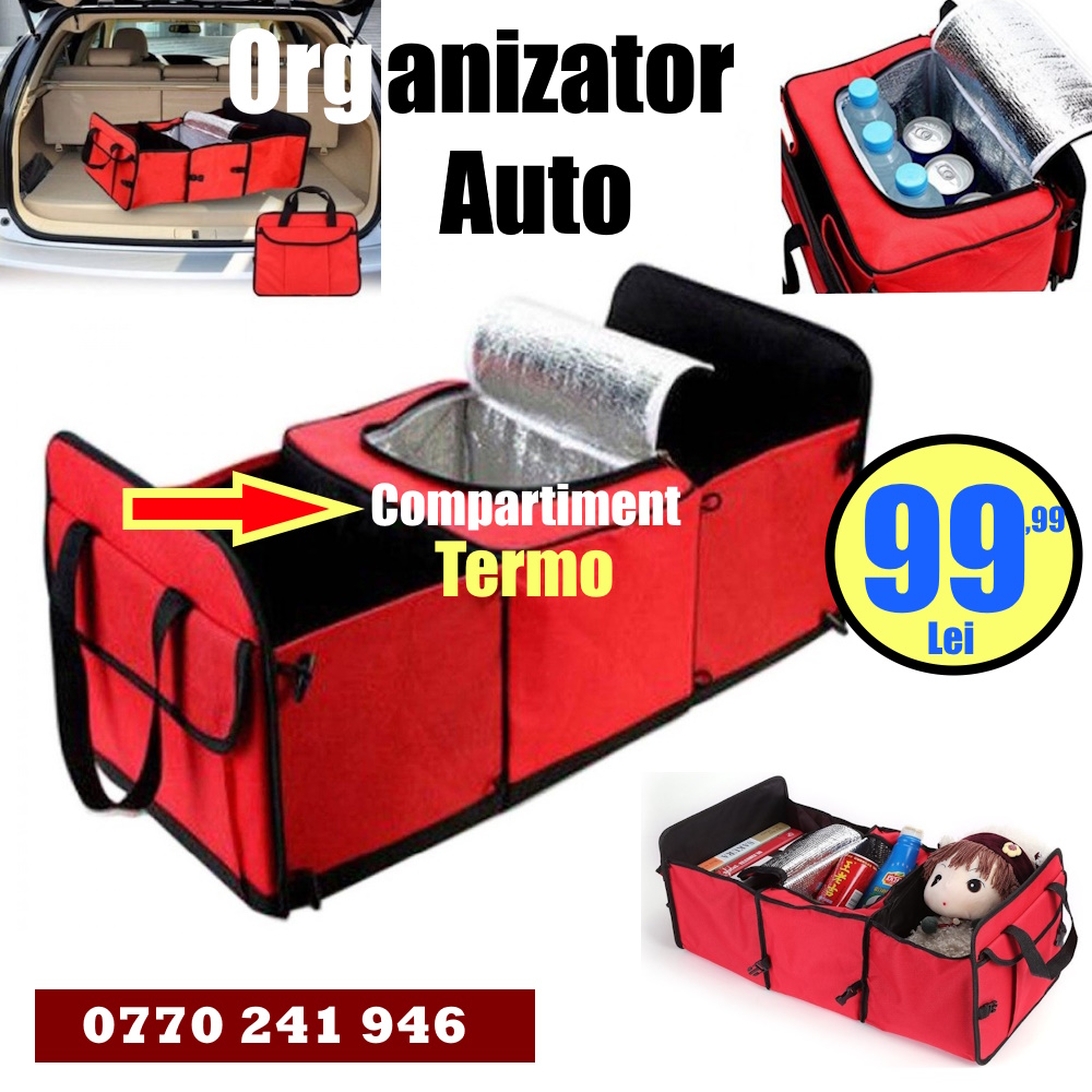 Racitorul a fost proiectat cu un scut izolat termic pentru a mentine alimentele si bauturile la o temperatura perfecta. Atunci cand nu il folositi, pur si simplu pliati organizatorul si racitorul si depozitati-l in portbagaj pentru a va mentine vehiculul curat si ordonat.