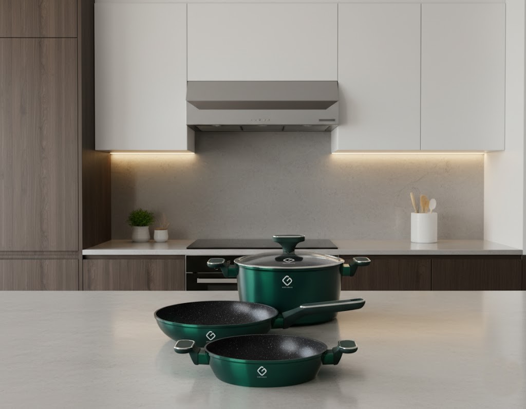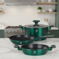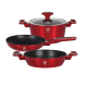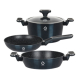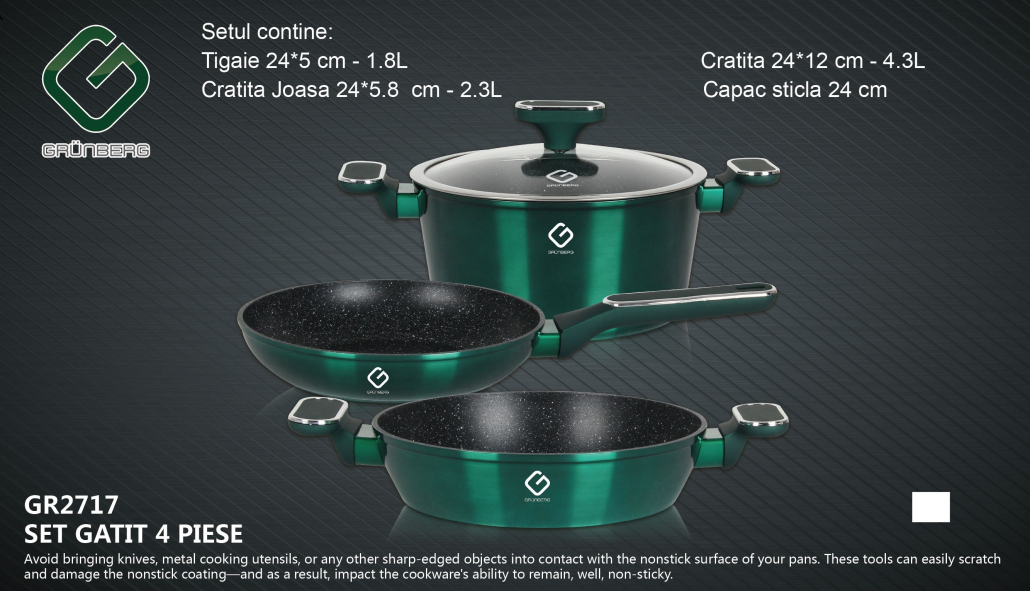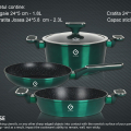 Set vase fabricate din aluminiu turnat, de inalta calitate, placate cu strat anti-aderent marmorat; cu manere ergonomice cauciucate; invelis exterior cu vopsea metalizata; rezistente la uzura indelungata.